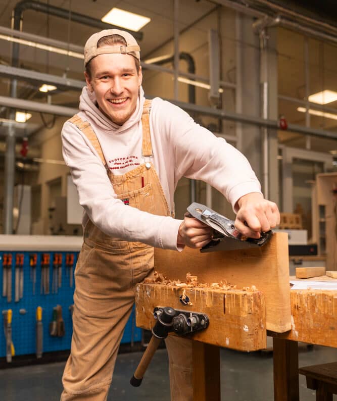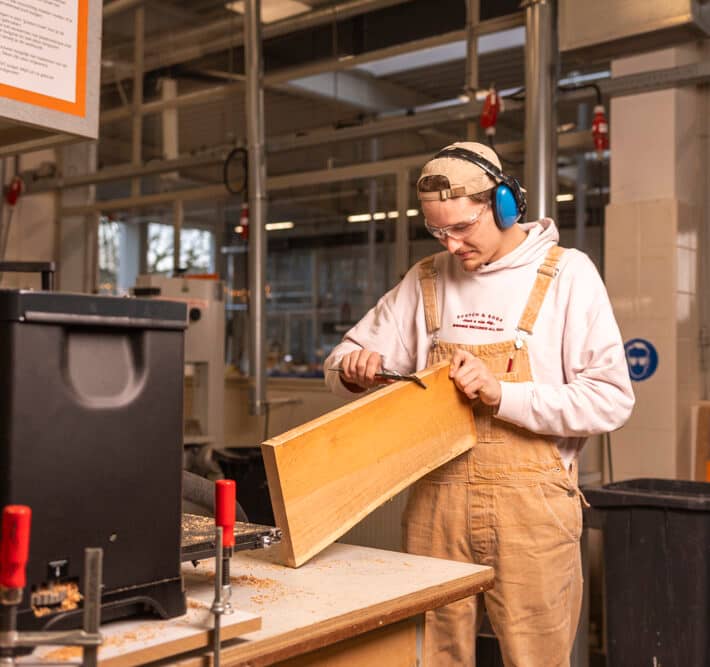 You will learn modern and traditional woodworking techniques and how to apply them in practice. You will often work for a client. You will make products mainly made of wood and ensure that the design and use match the requirements of the job. You carry out the entire process yourself, right up to the finished product that can be sold directly to the client. You spend a lot of time working in the (wood) workshop. You will also learn skills you need to work as an independent entrepreneur.