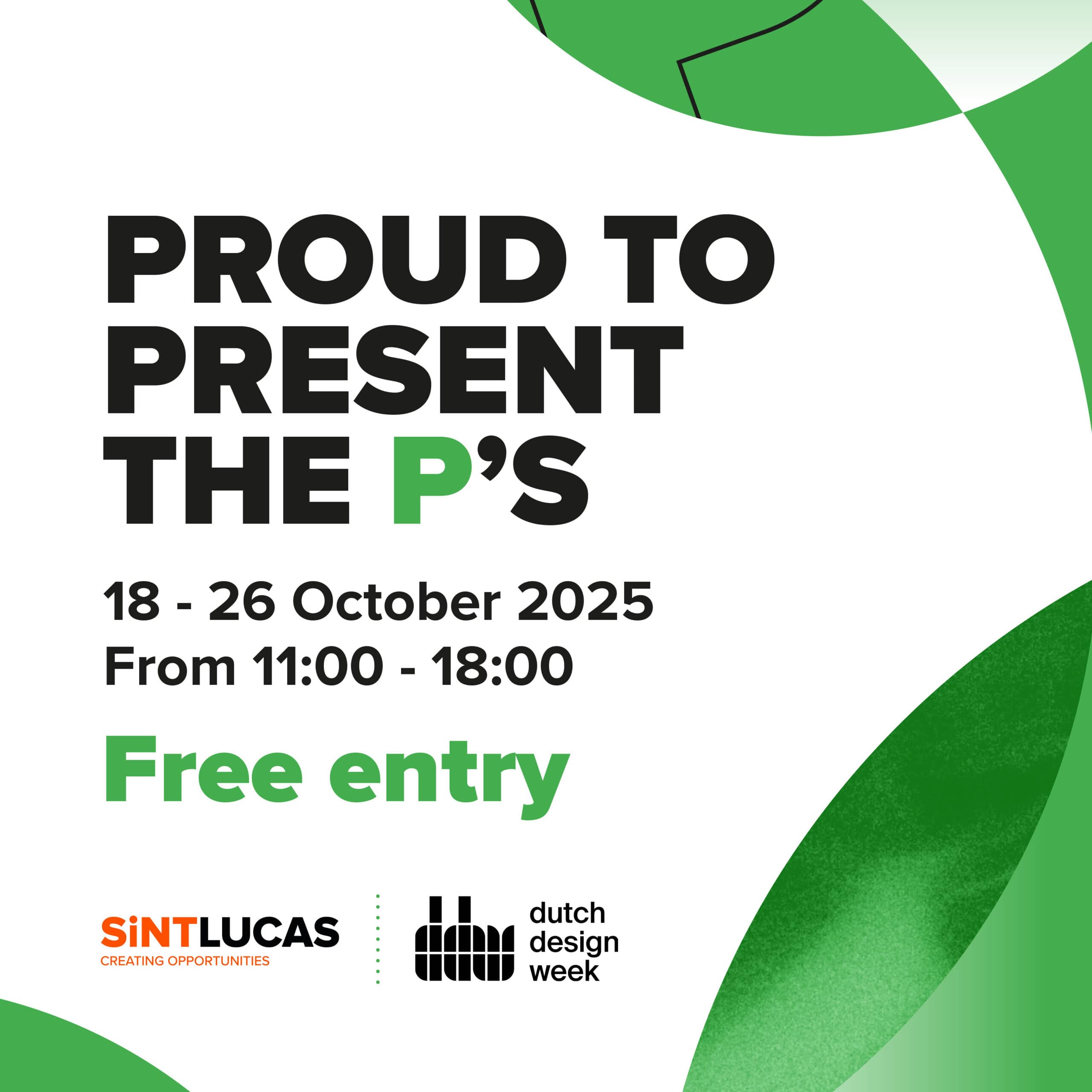 Past, Present, Possible is het thema van Dutch Design Week 2025. Bij SintLucas voegen we daar met trots nog een paar extra P’s aan toe. Onze studenten presenteren werk dat impact maakt, met een focus op People, Planet en Production: thema’s die écht van belang zijn in een wereld die voortdurend in beweging is. Van duurzaam design en sociale innovatie tot moderne productietechnieken — elk project is ontwikkeld met Passie en een duidelijk Purpose. Laat je inspireren door jong talent!
