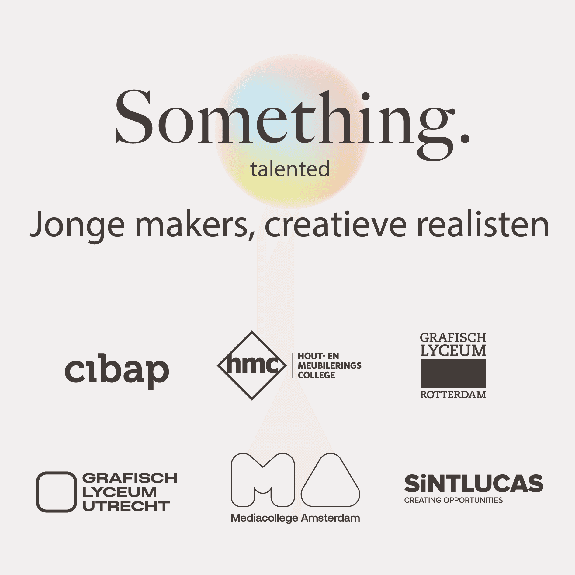 De zes mbo-vakscholen – Cibap (Zwolle), Grafisch Lyceum Rotterdam (GLR), Grafisch Lyceum Utrecht (GLU), Hout- en Meubileringscollege (HMC te Amsterdam en Rotterdam), Mediacollege Amsterdam en SintLucas (Eindhoven) – brengen opnieuw het beste werk van hun studenten samen. Onder de propositie “Wat wij bedenken, kunnen we maken. Wij zijn Creatieve Realisten” laten zij zien hoe jong talent met concrete ontwerpen inspeelt op maatschappelijke uitdagingen en nieuwe realiteiten. Van duurzaam product tot digitale installatie: de expositie benadrukt vakmanschap, goed ontwerp en toekomstbestendigheid. Het industriële karakter van de Schellens Fabriek, onderdeel van het ‘Something Bigger’-programma, biedt daarbij de ideale omgeving.
