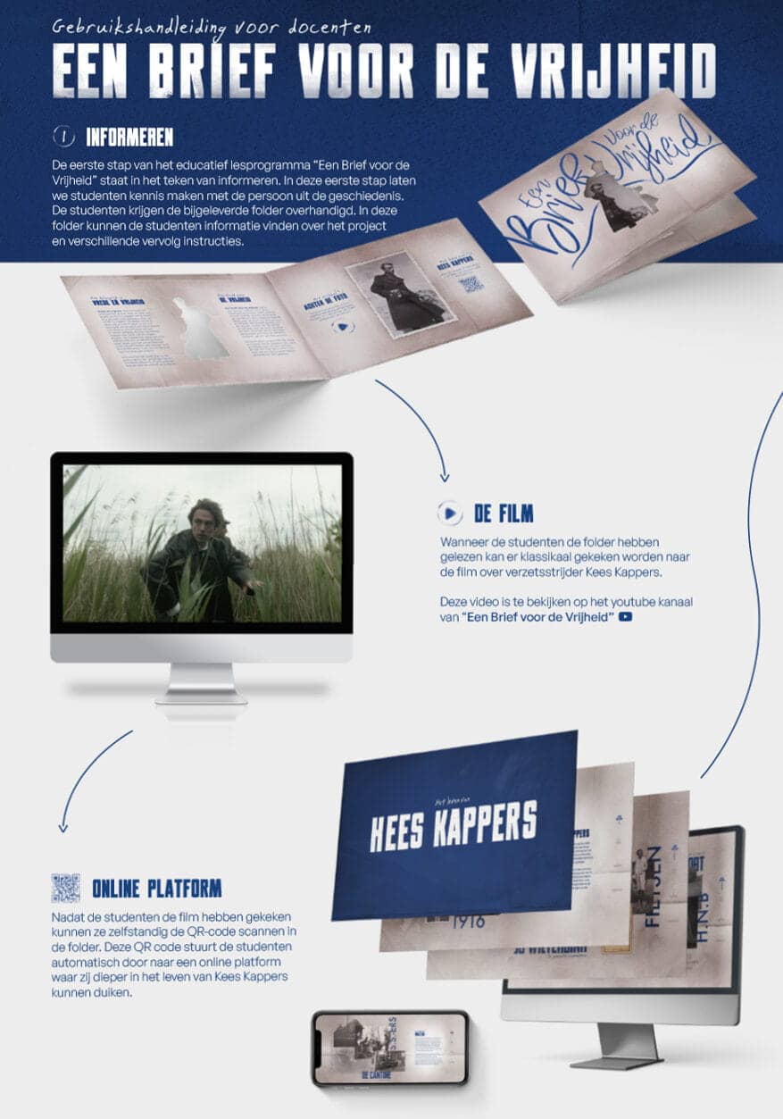 De kloof tussen de gebeurtenissen van de tweede wereldoorlog en de jongere generaties wordt steeds groter. Zij linken deze niet meer aan de moderne tijd en hun dagelijks leven. Meer dan de helft van de middelbare scholieren gelooft wel dat ze ervan kunnen leren. Zij hebben alleen behoefte aan tastbaarder lesmateriaal, waarmee het makkelijker wordt zich persoonlijk te verbinden aan de geschiedenis. Het lesprogramma laat leerlingen op een bijzondere manier persoonlijke linken leggen tussen verleden, heden en toekomst. Door het volgen van 5 eenvoudige stappen, worden leerlingen mee terug in de tijd genomen. Ze worden hierbij voorgesteld aan iemand die, gedurende de 2e wereldoorlog, heeft bijgedragen aan hun vrijheid . Hierdoor creëert het lesprogramma op een moderne en unieke manier de mogelijkheid om tastbare lessen te bieden aan de nieuwe generatie jongeren. Op deze manier wordt hen bijgebracht dat de vrijheid die ze vandaag de dag ervaren niet vanzelfsprekend is.